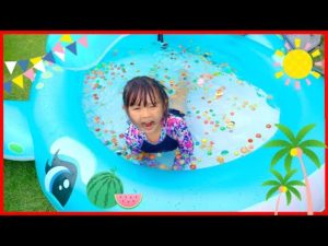 禰豆子ちゃんだってプールに入りたい!大量ピカピカすくいの光るプールにねずこちゃん大喜び!?プール開き 寸劇 鬼滅の刃 ママコラボ#182